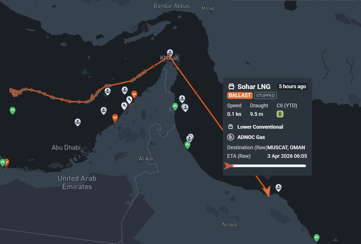Last Thursday 2 April, the first LNG carrier traversed the Strait of Hormuz since the outbreak of hostilities. But the Omani vessel went in ballast. No LNG was exported. The ship simply repositioned back to Oman. It was a logistical move.