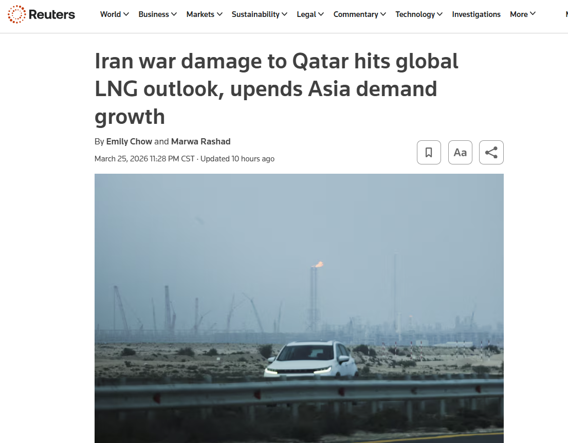 But one in particular is worth mentioning: a very interesting Reuters report about the volume of LNG lost due to Hormuz closure and the 3-5-year outage at the two Qatari LNG trains damaged by Iranian strikes.