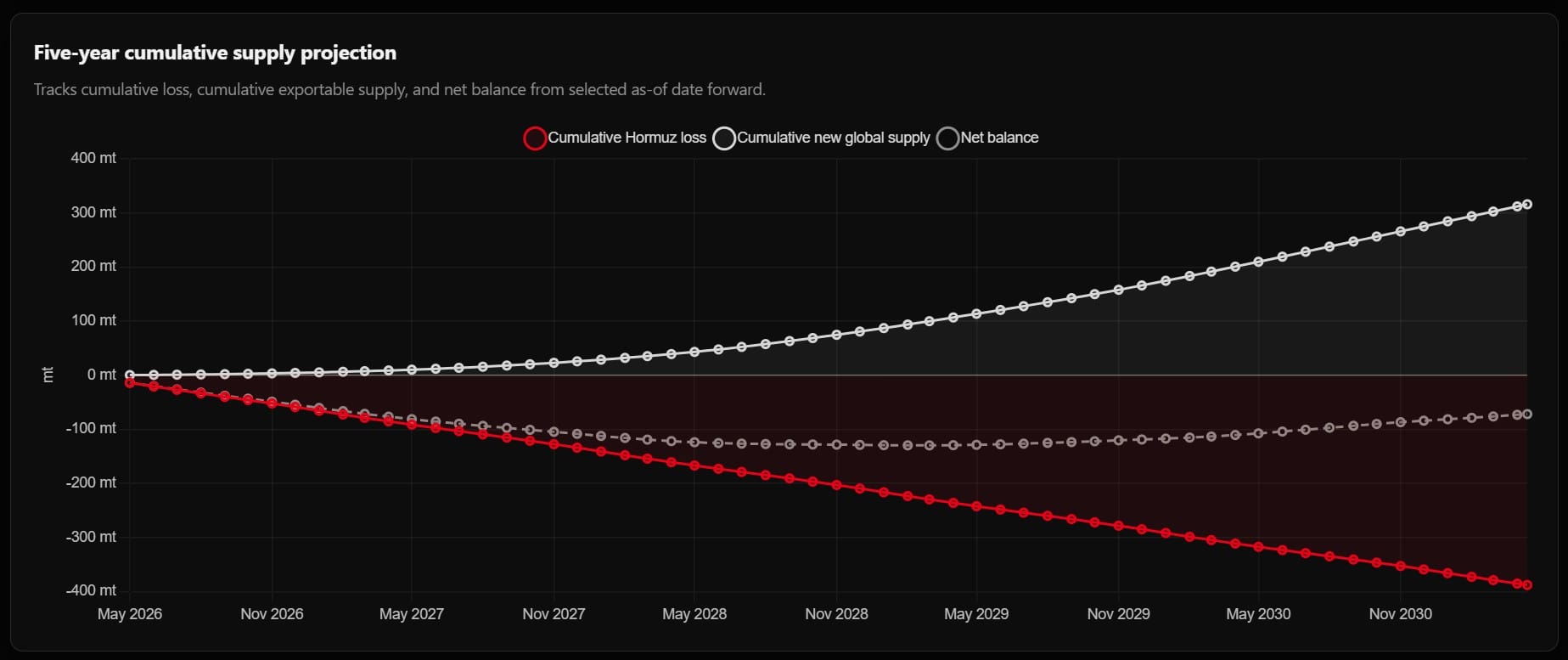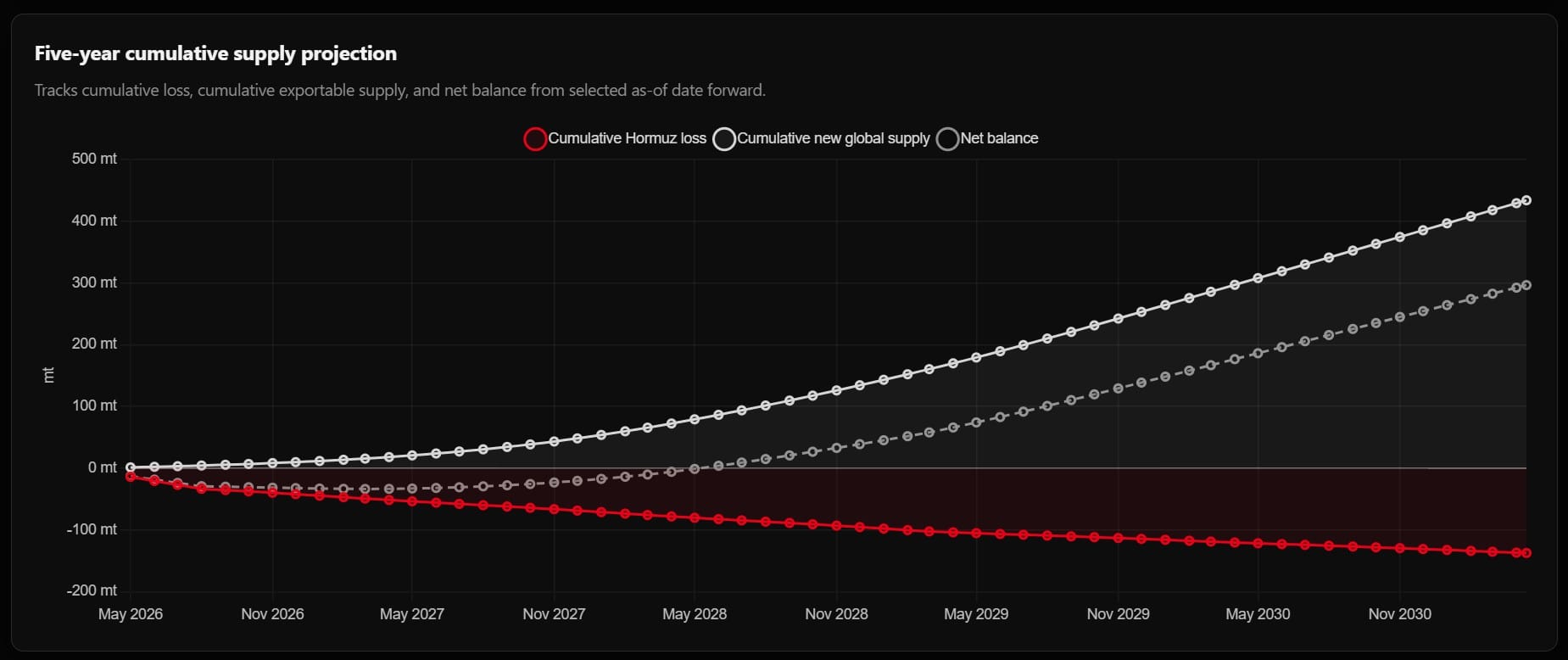 … and the cumulative physical supply loss from Hormuz closure could be completely eliminated by May 2028.